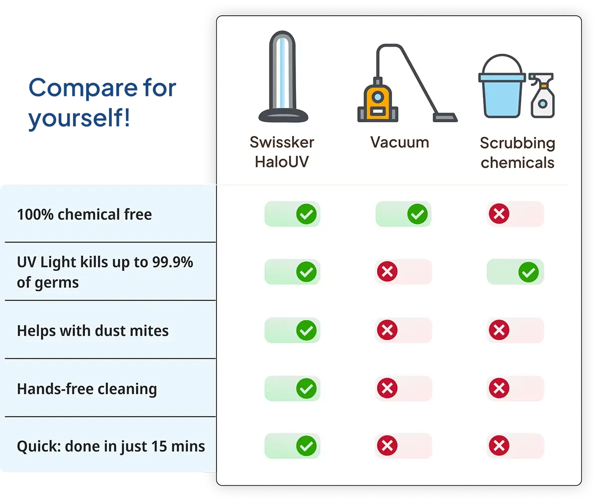 at risk… Not to mention dust mites leaving eggs and feces in your bed. The Swissker HaloUV is the easiest way to eliminate harmful invaders and get long-lasting relief from allergies all year long.