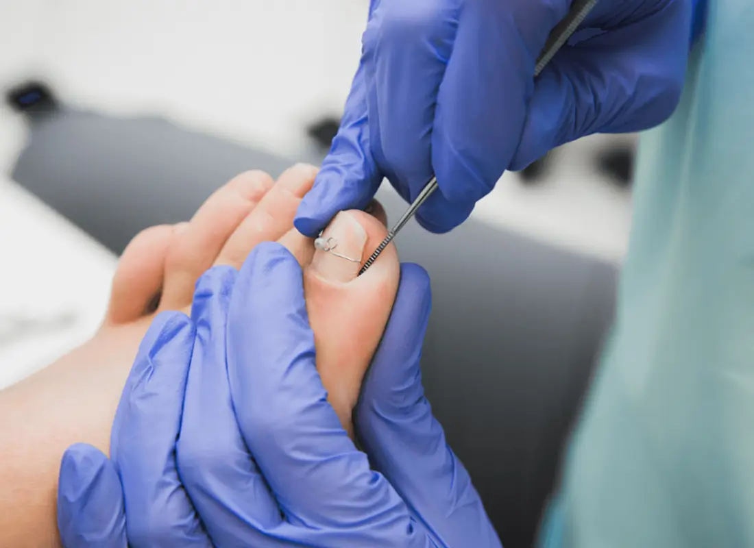 Note: Always be on the lookout for these red flags of early ingrown nails: Pain, pus, Swelling, bleeding, and overgrowth of skin around the toe.
