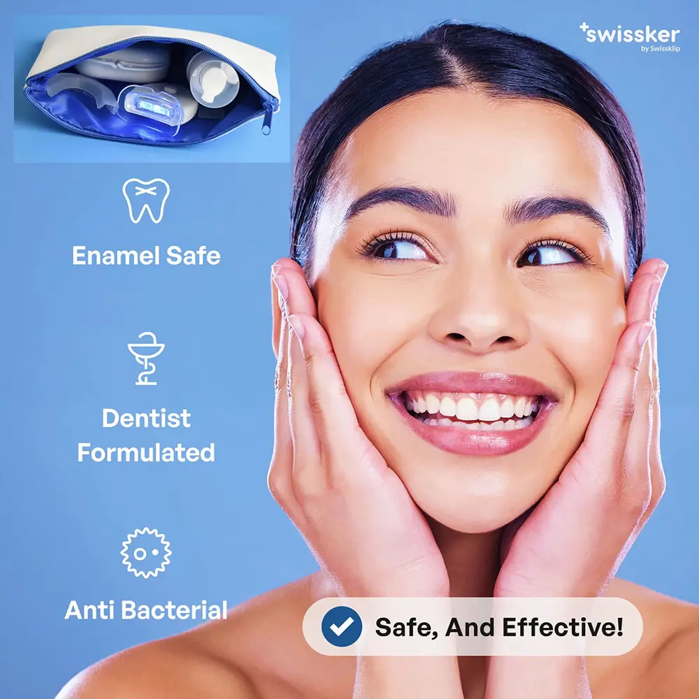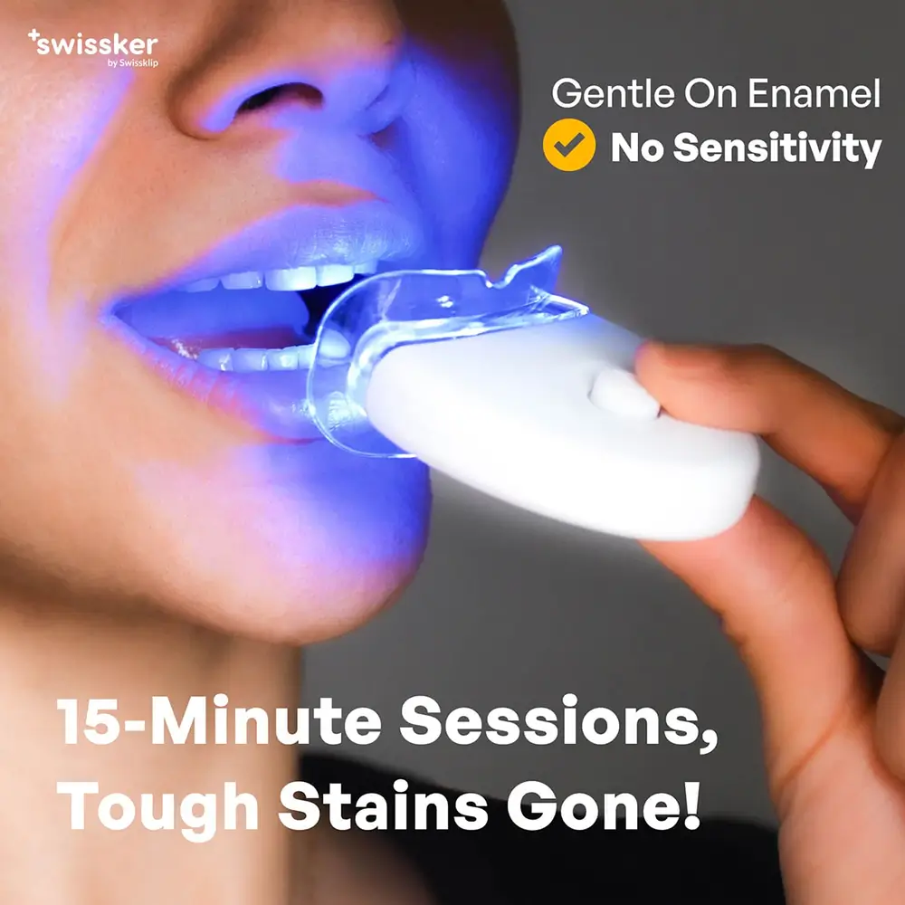 Simply use the LED Teeth Whitening Kit every day for rapid results – you don’t even have to give up your morning coffee!