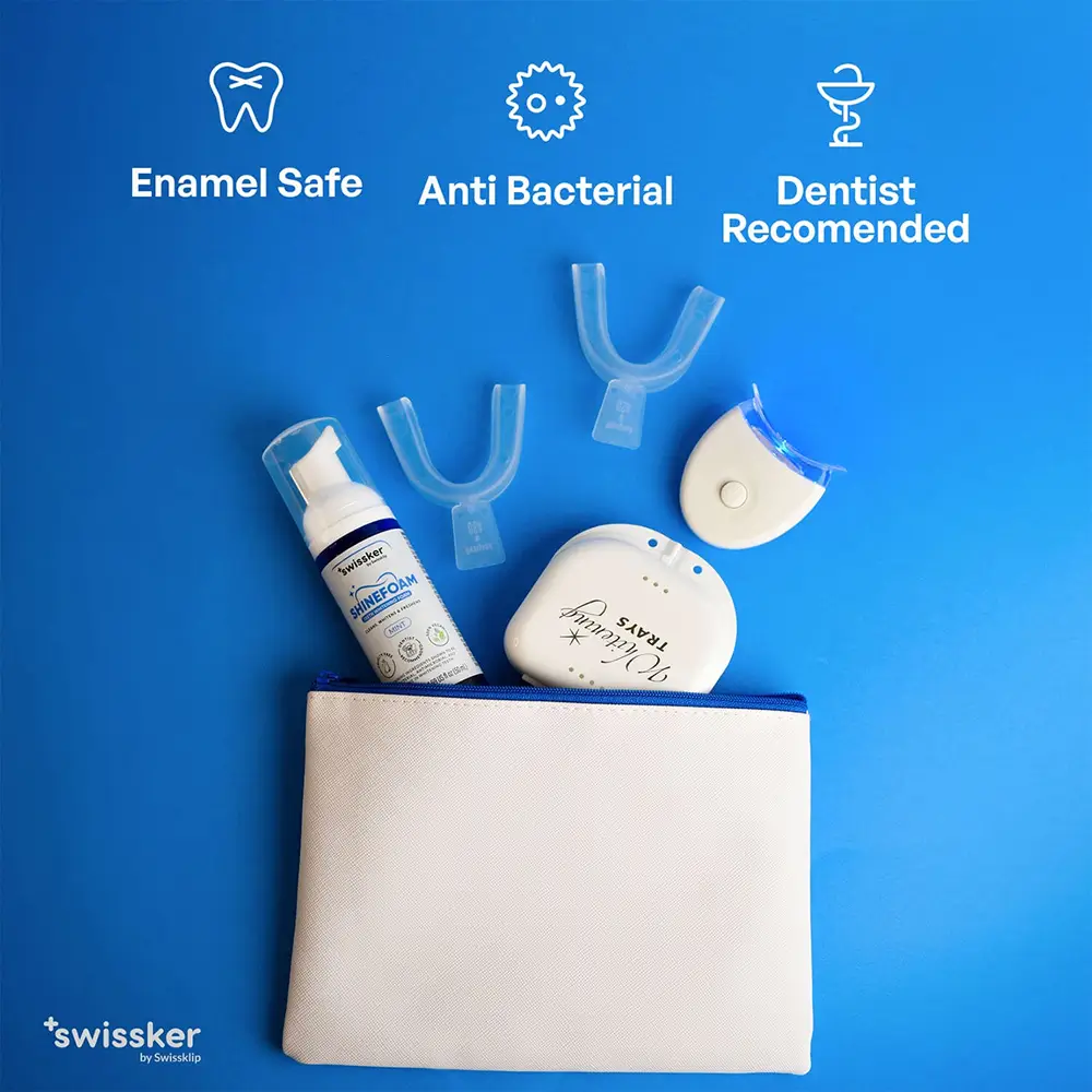 Our Teeth Whitening Light and ShineFoam combination lifts and eliminates stubborn stains fast.