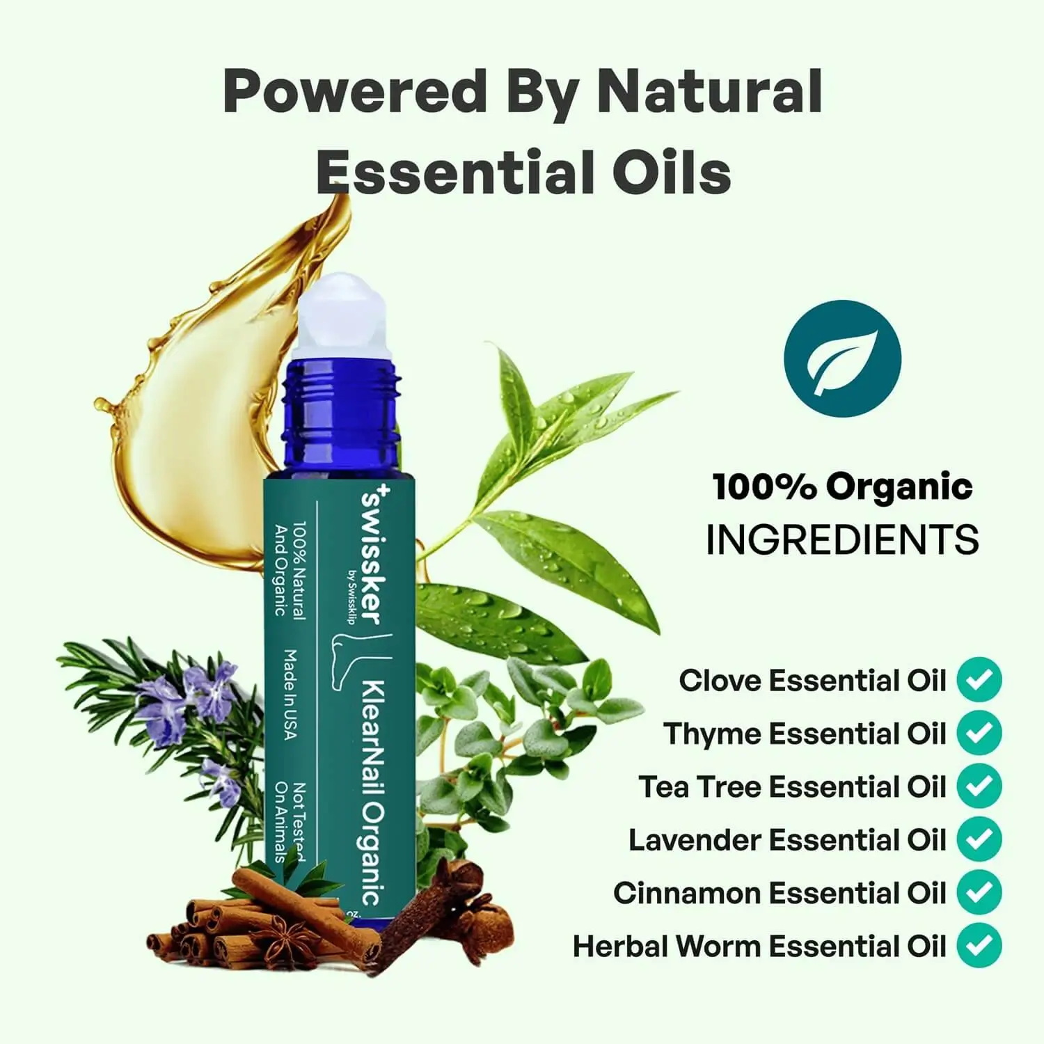 Packed with organic tea tree, thyme, clove, and lavender oils—plus a potent herbal infusion rich in vitamin E and plant-based antioxidants. Supports healing, reduces irritation, and protects skin and nails while fighting fungus.