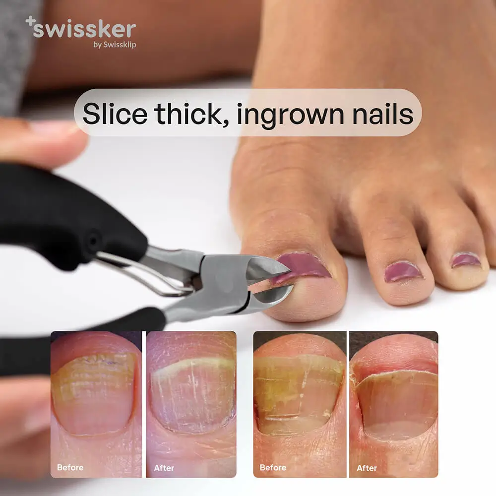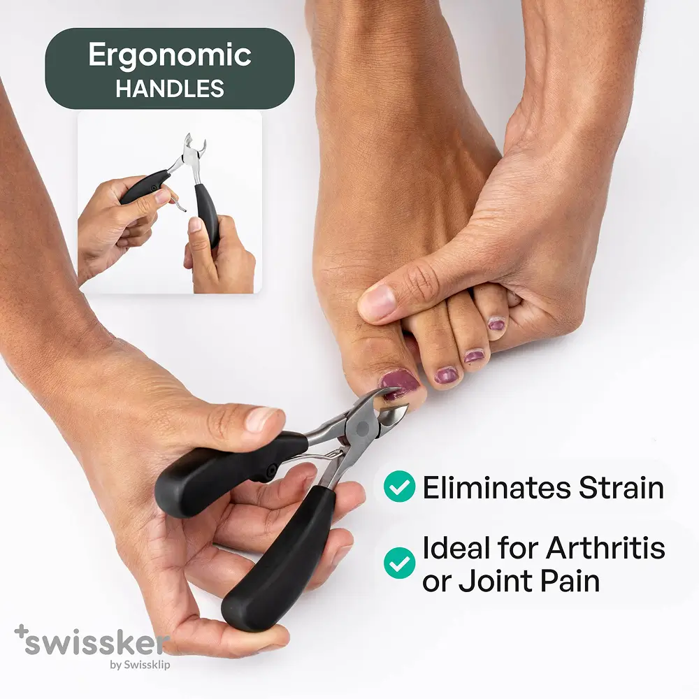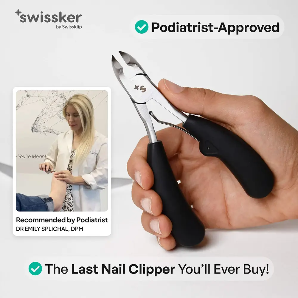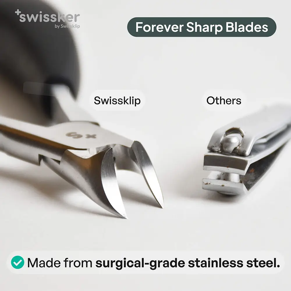The Swissker Heavy Duty toenail clipper features our exclusive Forever Sharp Blades, combining a long, big non-slip handle and double sharpened blades for effortless and precise nail clipping, even on thick and ingrown nails.