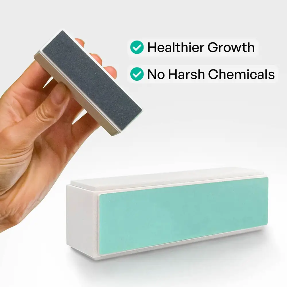Crafted with premium, hypoallergenic materials, each side of the buffer targets specific nail needs: