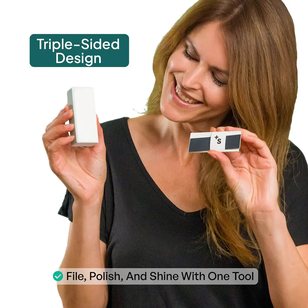 - Dazzle: Ultra-fine white pad delivers a glossy, salon-worthy finish. No more juggling multiple tools—get pro results with just one block.