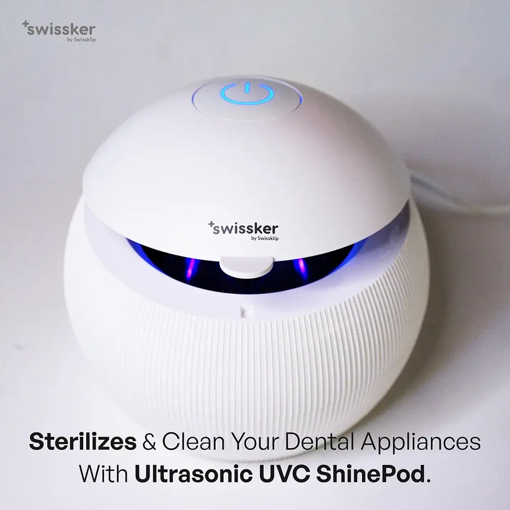 ShinePod is an ultrasonic retainer and denture cleaner that combines high-speed vibrations with UVC light for a deep, complete clean.